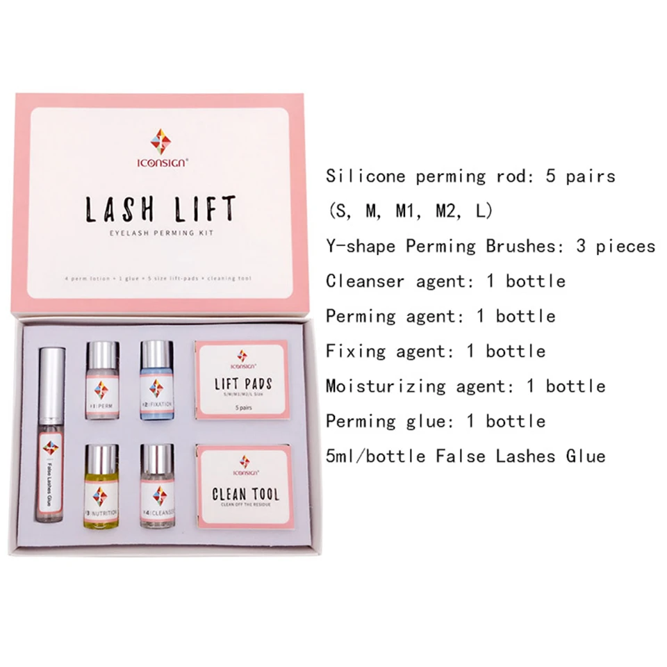 Силиконовые стержни x5 пар (S,M,M1,M2,L)Y-образные кисти для завивки x3 штукОчищающее Средство x1Перминг агент x1Фиксирующий агент x1Увлажняющий агент x1Клей для завивки: x15 мл/бутылка ложный клей для ресниц