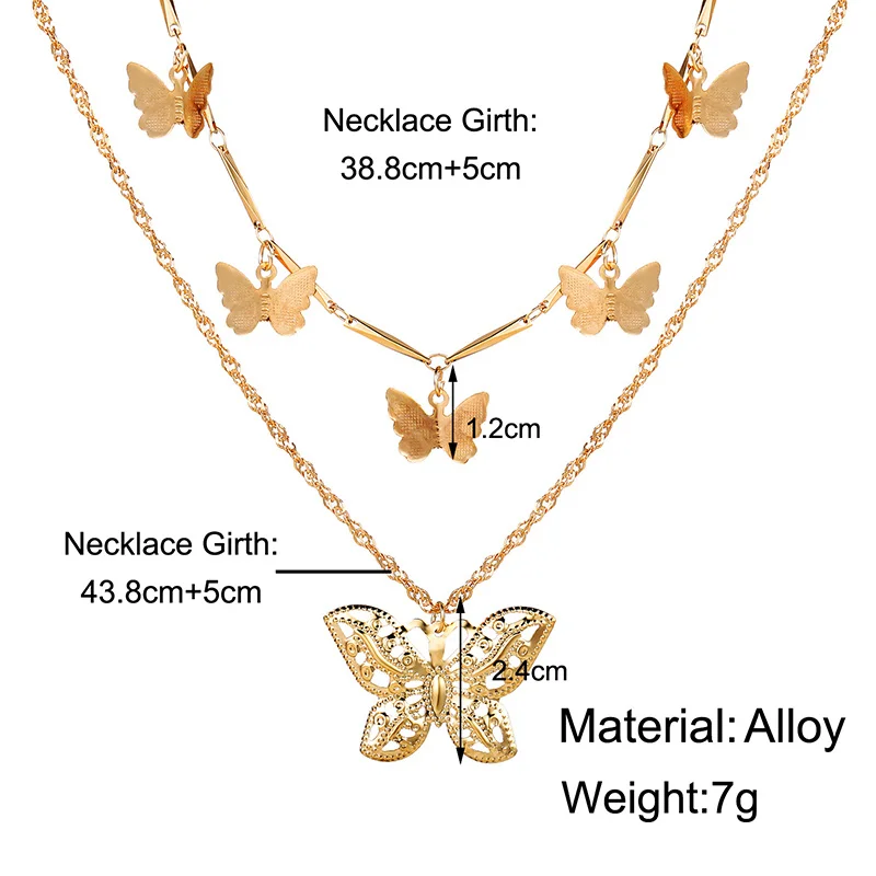 Женское винтажное ожерелье с подвеской-бабочкой, многослойное ожере...