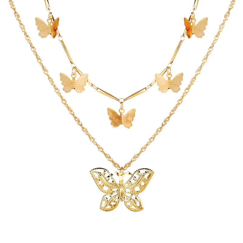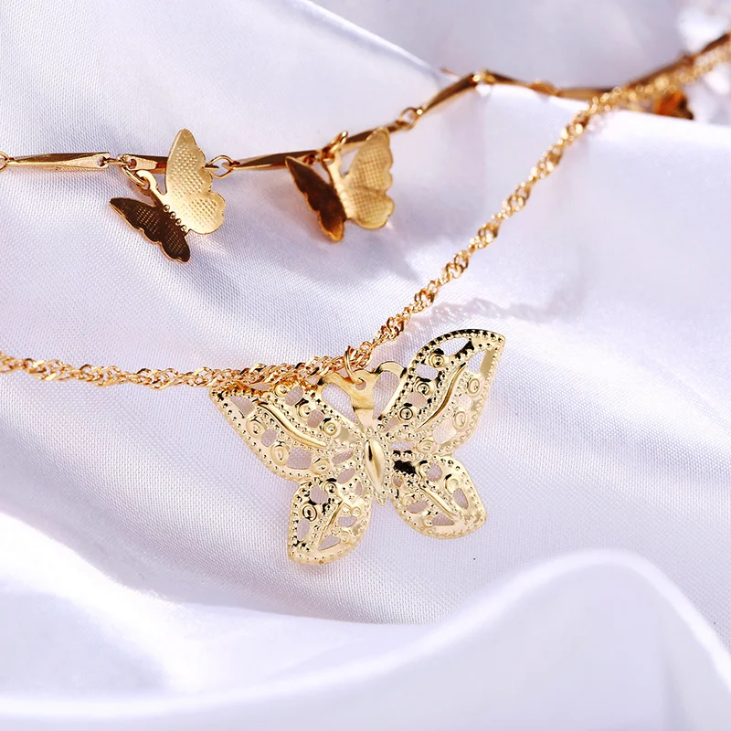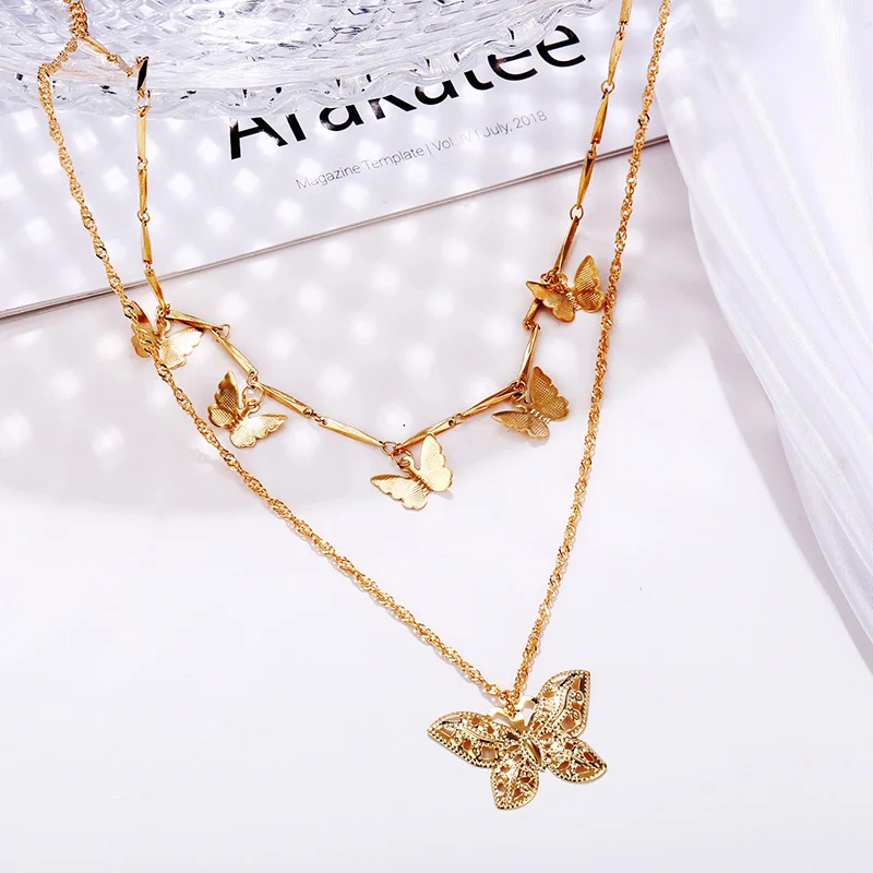 Ожерелье-чокер многослойное с подвеской-бабочкой женское, Винтажное колье золотистого цвета, длинная цепочка с кулоном, бижутерия, 2021
