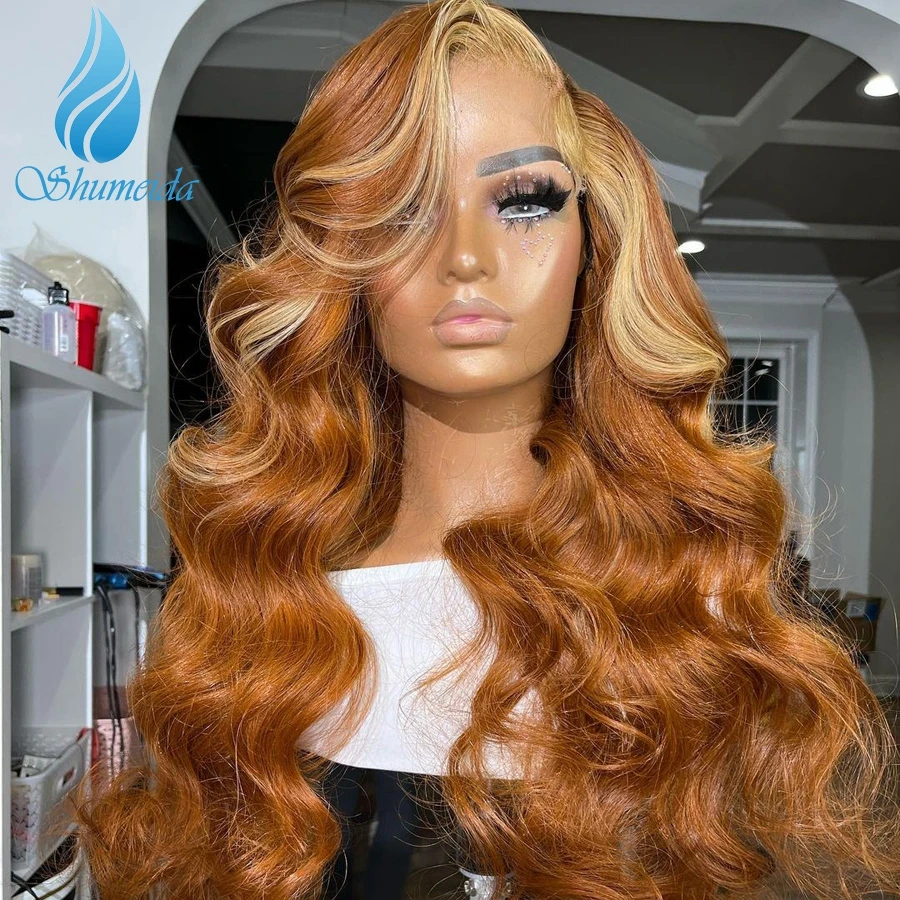 Парик Shumeida имбирного цвета с эффектом омбре, 13*4, парики на шнуровке спереди, блонд, предварительно выщипанные волосы, перуанские волосы Remy, парик без клея для женщин