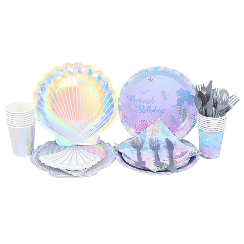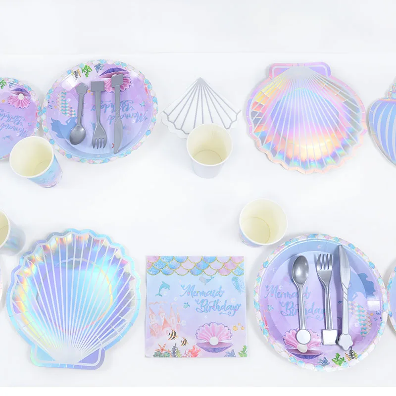 Вечерние одноразовые салфетки русалки, лазерная оболочка, бумажные тарелки, салфетки для стаканчиков для девочек, тематическая вечеринка на день рождения вечерние украшения для детского душа