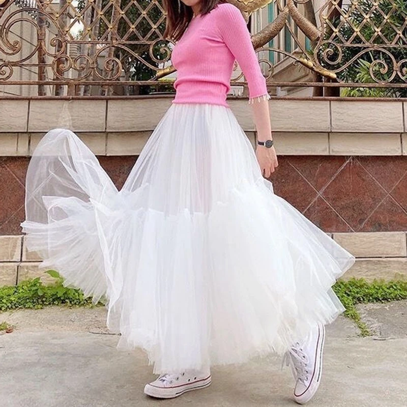 Женская элегантная Тюлевая юбка-пачка, однотонная многослойная плиссированная юбка-трапеция средней длины с высокой талией, платье принцессы для вечеринки и выпускного вечера, уличная одежда