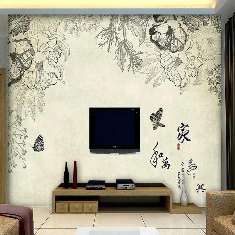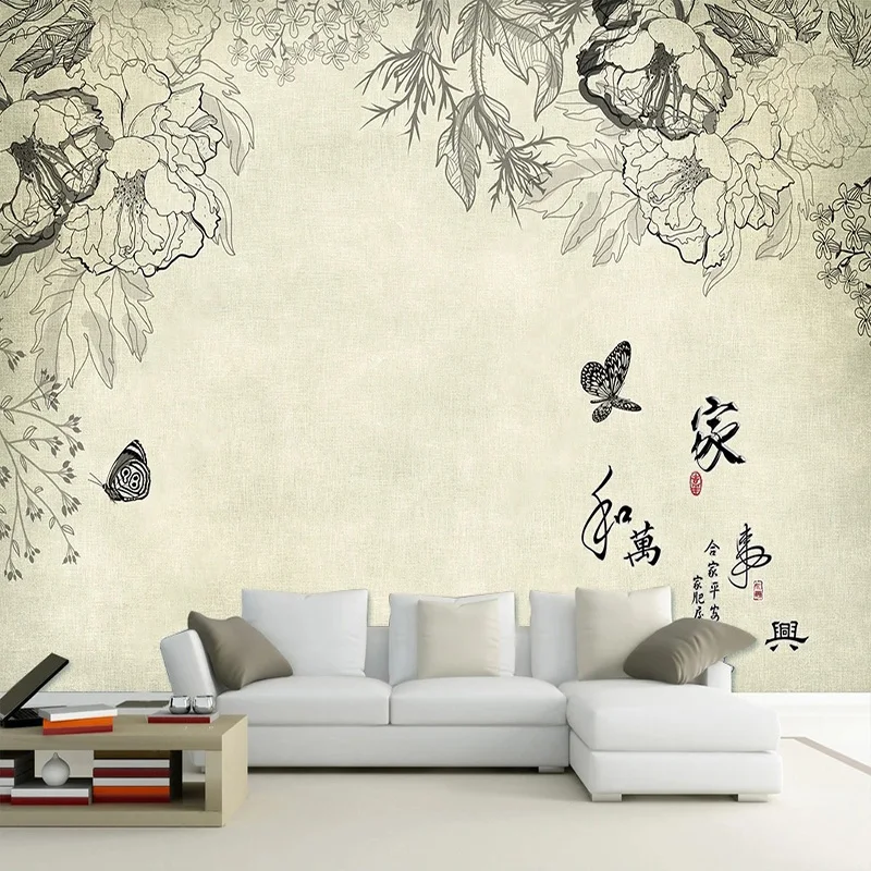 3D Роспись на заказ, настенная бумага в восточном стиле, ручная роспись, цветы и бабочки, настенная бумага для спальни, роскошное украшение на стену, фреска