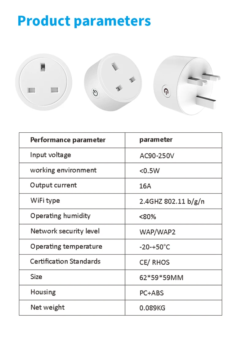 Умная розетка Aubess, 16 А, с поддержкой Wi-Fi и голосового таймера