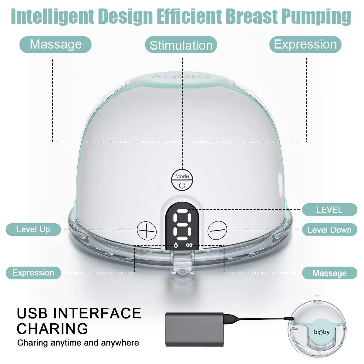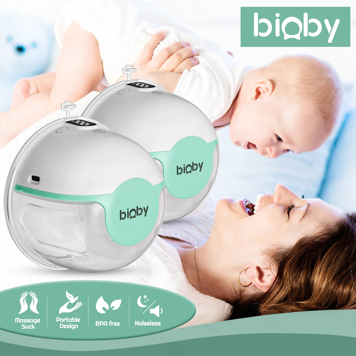 Электрические Переносные молокоотсосы Bioby, портативное устройство для извлечения грудного молока, массажер без рук, USB, бесшумный, без БФА, новые детские аксессуары