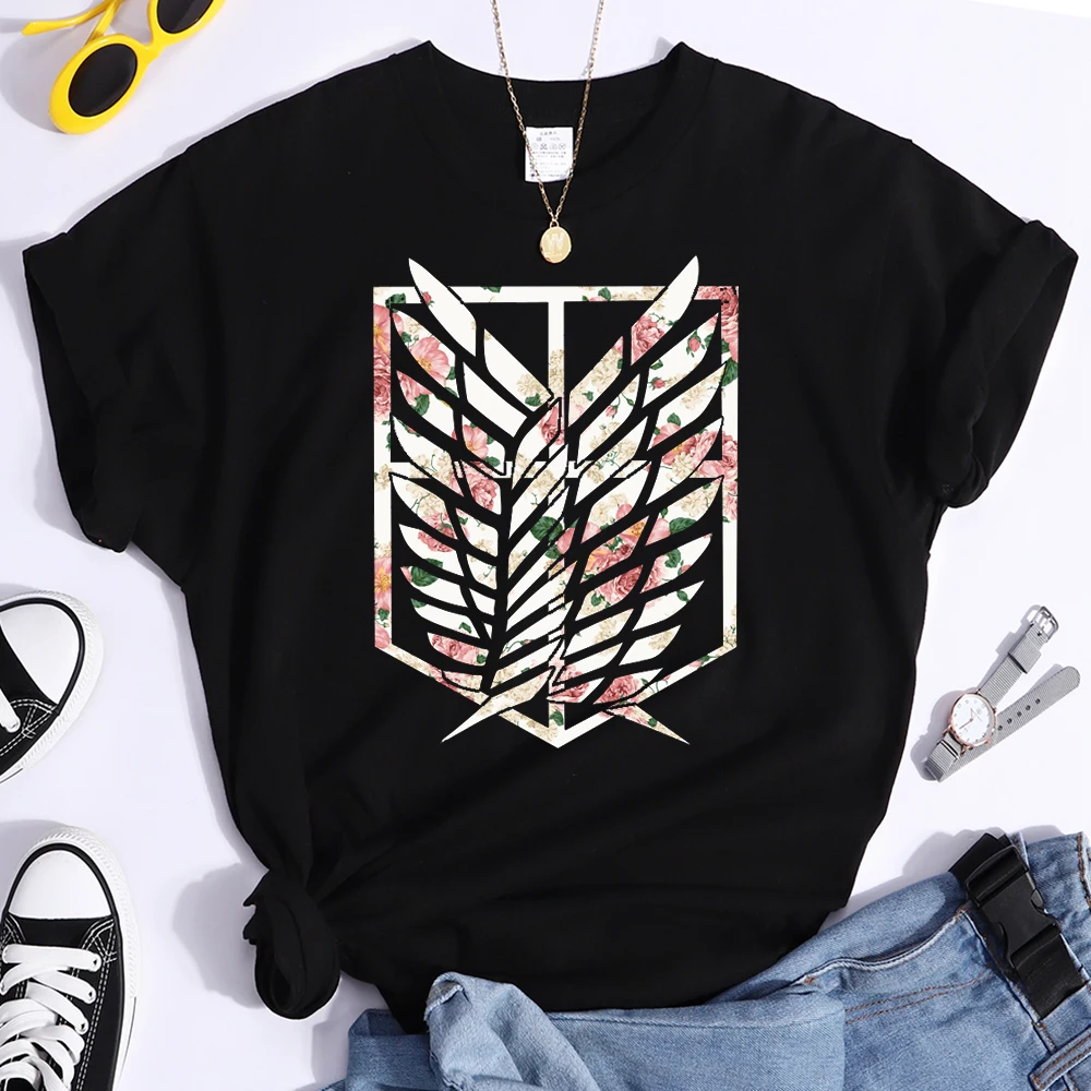 Футболка женская с принтом из аниме атака на Титанов, мягкая Модная рубашка с коротким рукавом и круглым вырезом, большие размеры, на лето