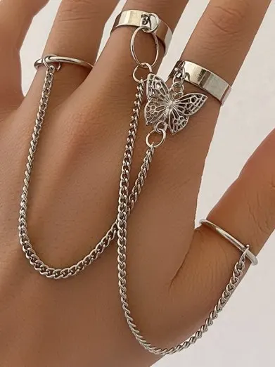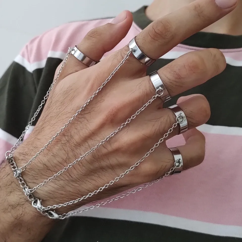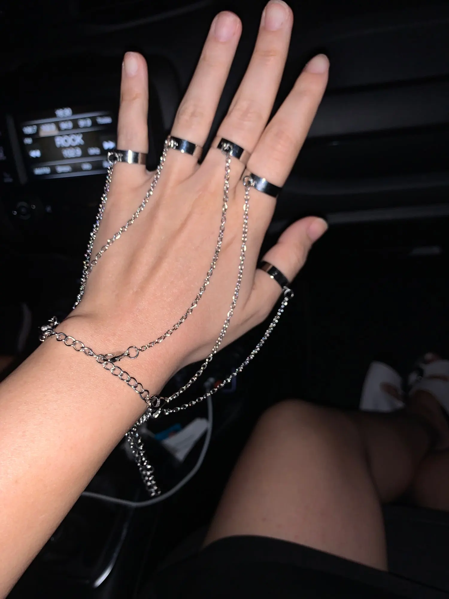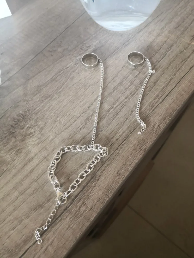 Брала по купону за 47₽ - за такую цену вообще огонь, особенно кольцо в виде змеи очень порадовало - смотрится реалистично, стильное и сделано хорошо) Два широких кольца с цепочкой - необычный и интересный вариант.