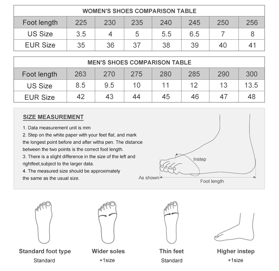 Пожалуйста, выберите размер в соответствии с вашей стопой, этот размер показывает внутренний размер обуви, мы рекомендуем выбрать больший размер, он будет более удобным.
