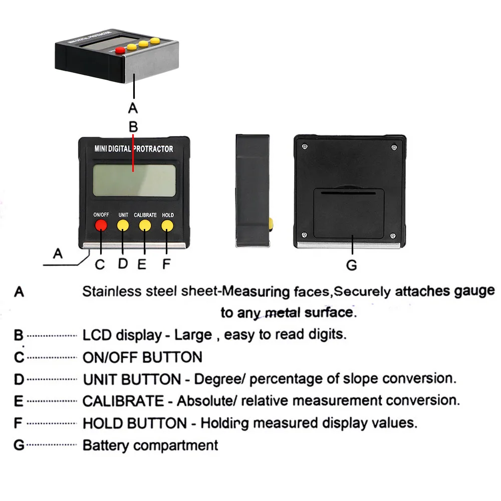 Электронный угломер, угломер с магнитным основанием, 360 градусов