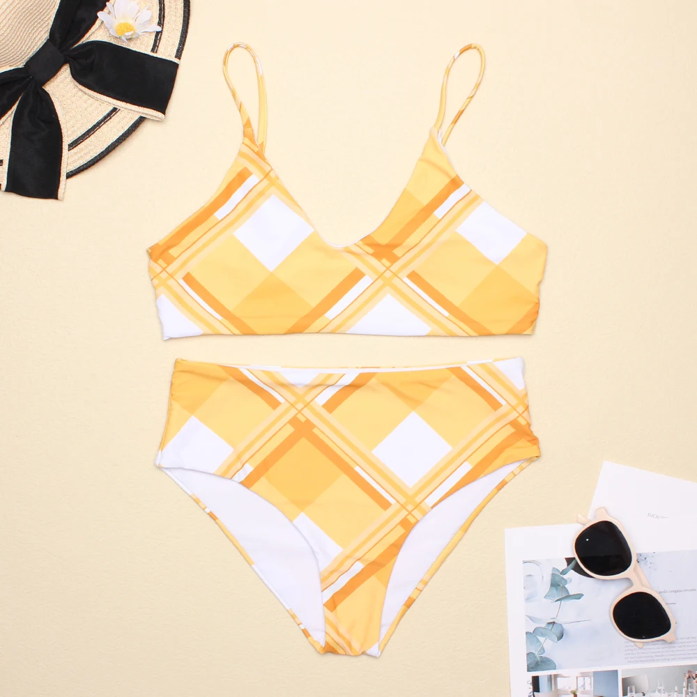 Женский желтый мраморный купальник, бикини с принтом из двух частей, сексуальный летний купальник, винтажный пляжный купальный костюм, монокини для плавания, Размеры S XXL