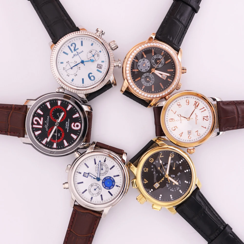Финальная распродажа, скидка, мужские часы Melissa, многофункциональные японские кварцевые часы из натуральной кожи, часы из нержавеющей стали, модные часы без коробки