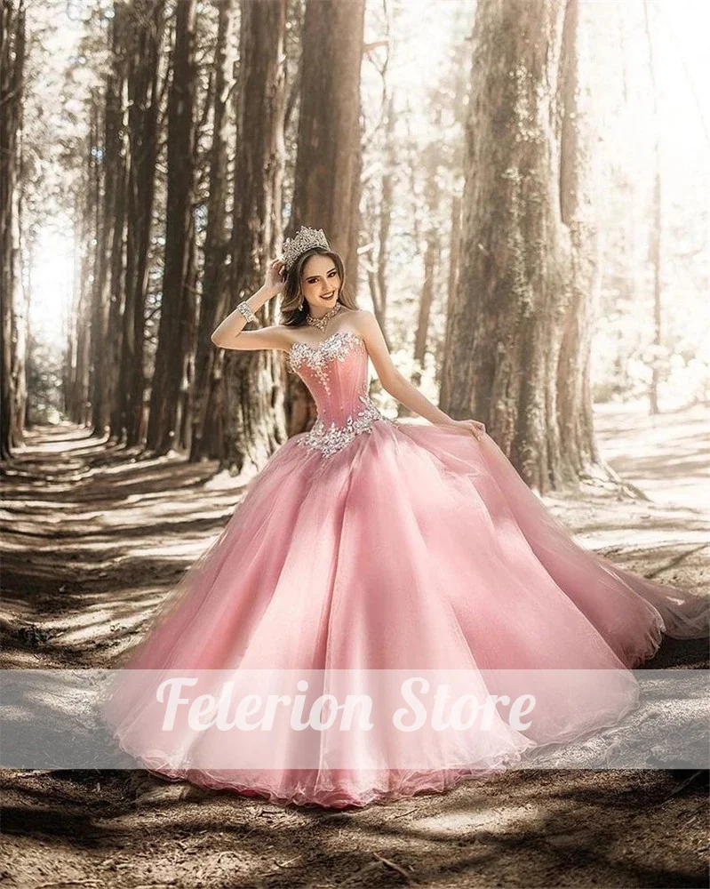 Розовое Бальное платье принцессы для 16-летнего бального платья, платье для выпускного вечера, привлекательное бальное платье с открытой спиной, пышное Тюлевое платье для дебютирования любимой женщины
