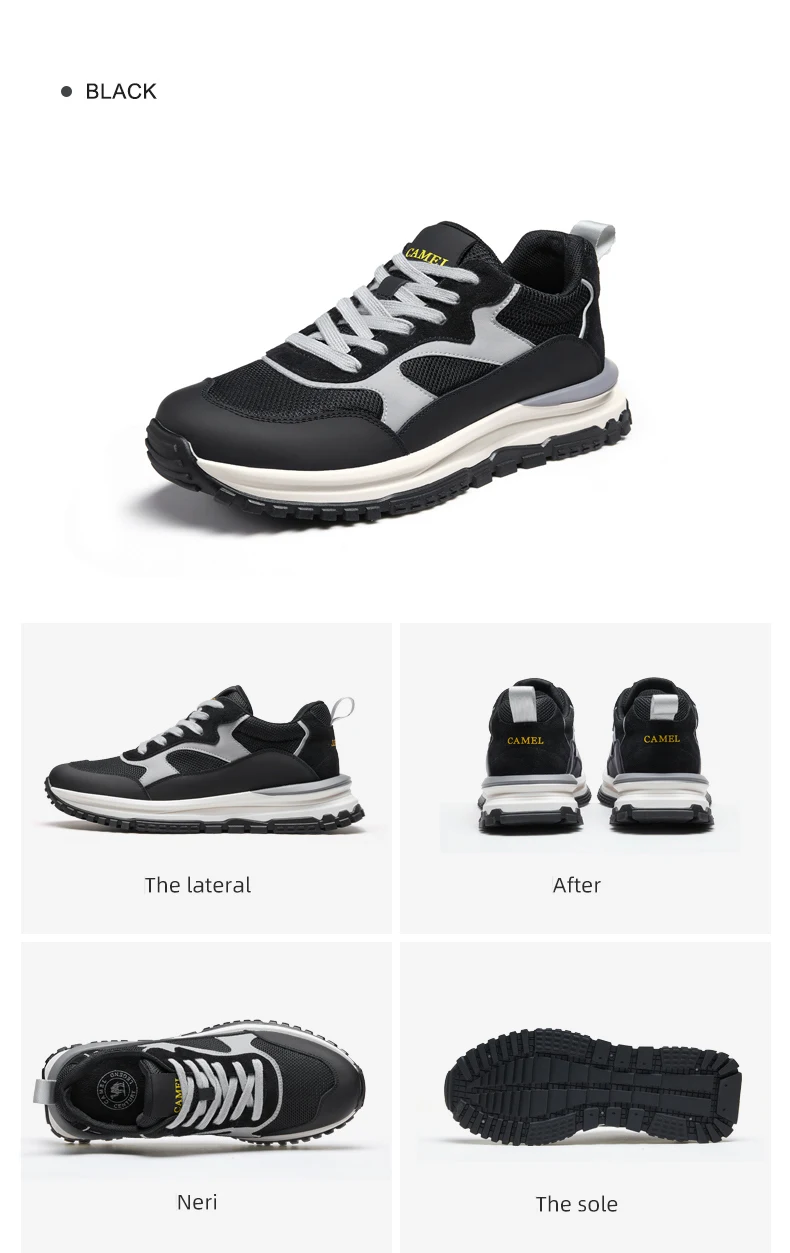 Мужские сетчатые кроссовки CAMEL, черные дышащие кроссовки на толст...