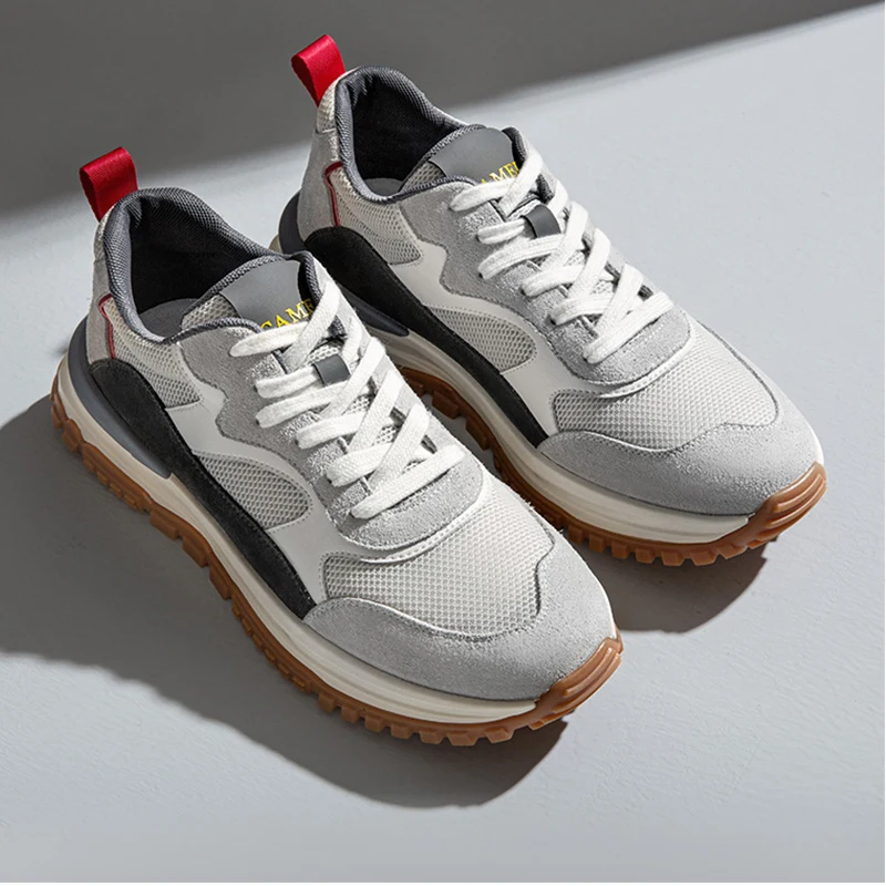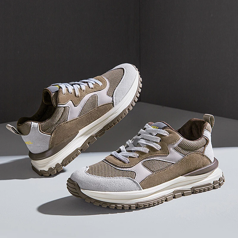 Мужские сетчатые кроссовки CAMEL, коричневые дышащие кроссовки из коровьей замши в стиле ретро, Повседневная модная обувь на толстой подошве для весны, 2022