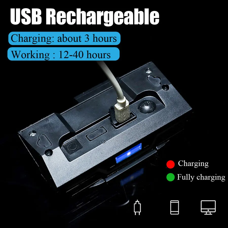 Время зарядки: около 3 часовВремя работы: около 12 часов для 100% освещенияОколо 40 часов для дыхательного освещения