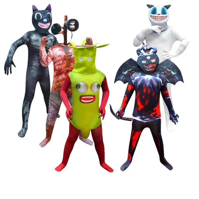 Карнавал Хэллоуин Черный кот Косплей костюмы сирена голова ужас смешная банан ед одежда дети мальчик сумасшедшая игра Чейз комбинезон
