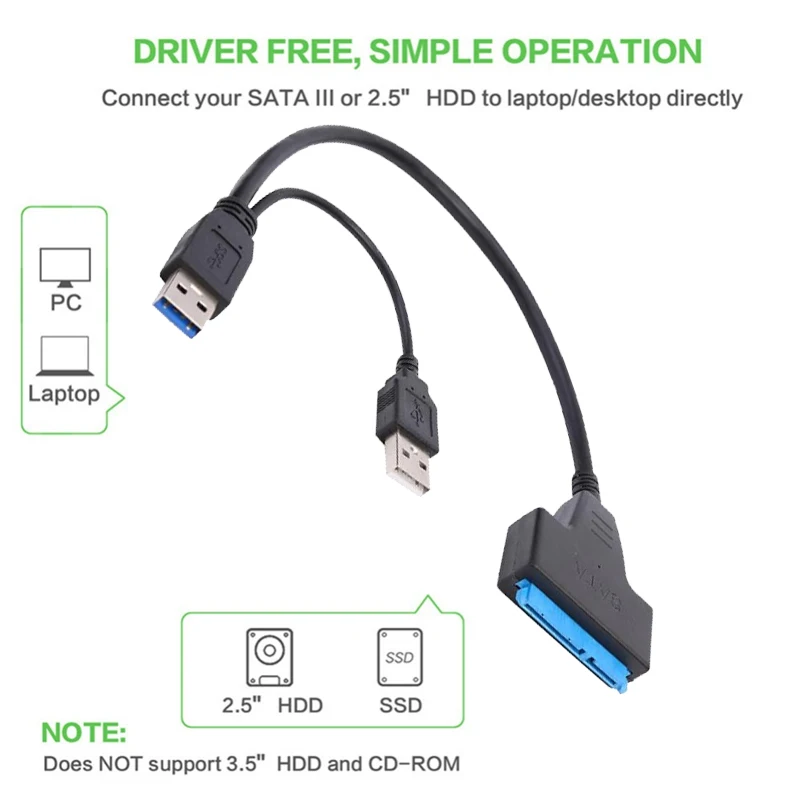 22-контактный кабель SATA-USB, поддержка 2,5-дюймового HDD SSD Внеш...