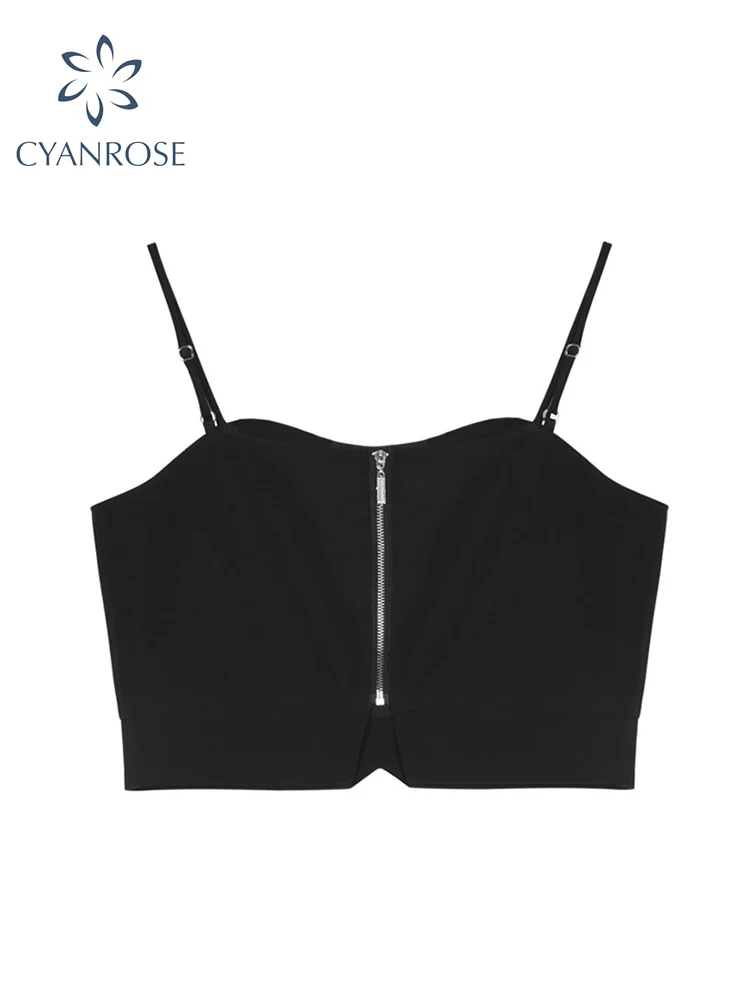 Новинка 2022, женские майки, уличная одежда, укороченный топ, Женский однотонный Повседневный Готический пикантный Топ для E-girl Y2K, модный жилет на молнии для девушек