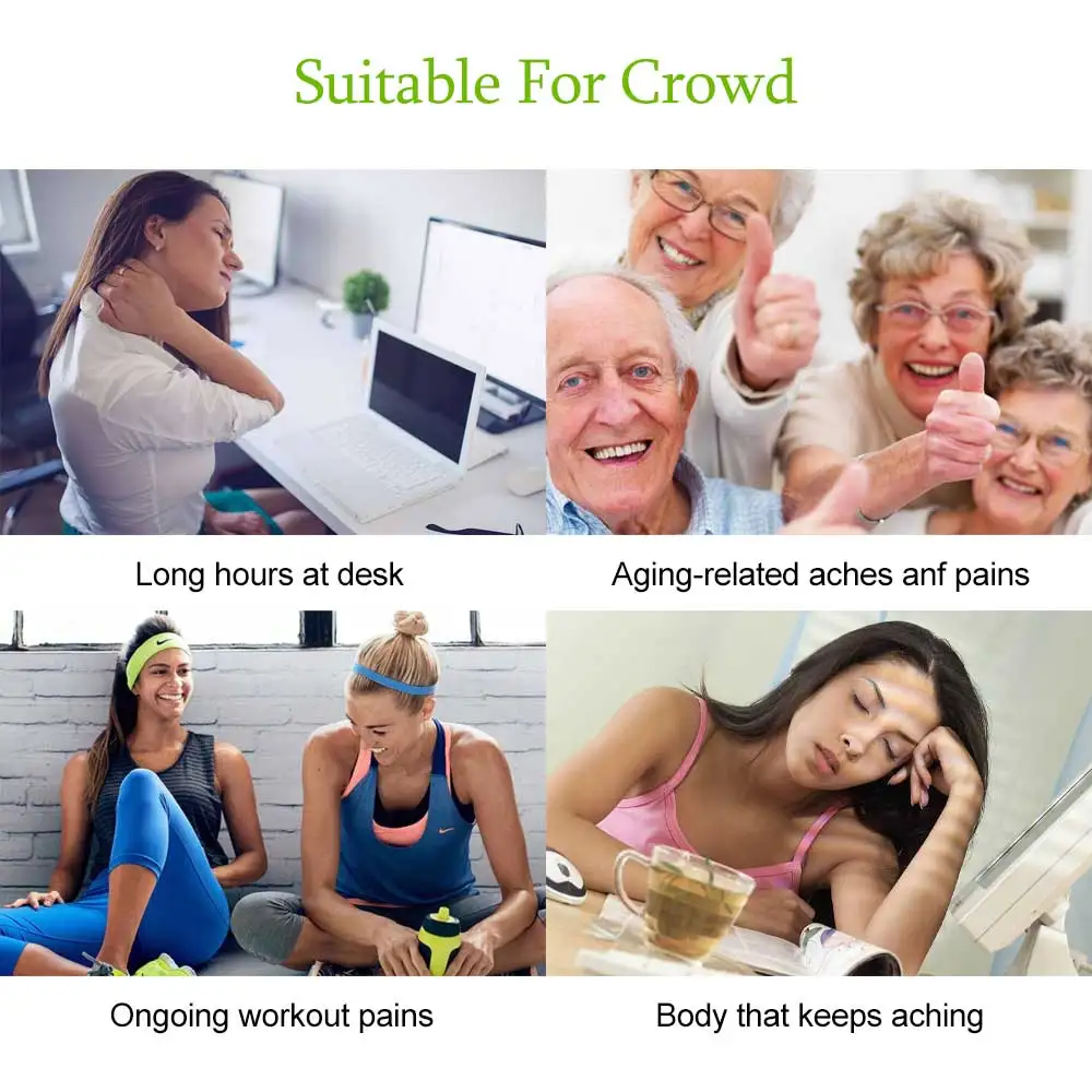 Применимые части тела: запястья, ноги, локоть, лодыжки, шеи, талии, спины, уха, лица, плеча, спины, ног, колена, нервов, мышечной боли, теннисный локоть и многие другие острые и хронические физические боли.