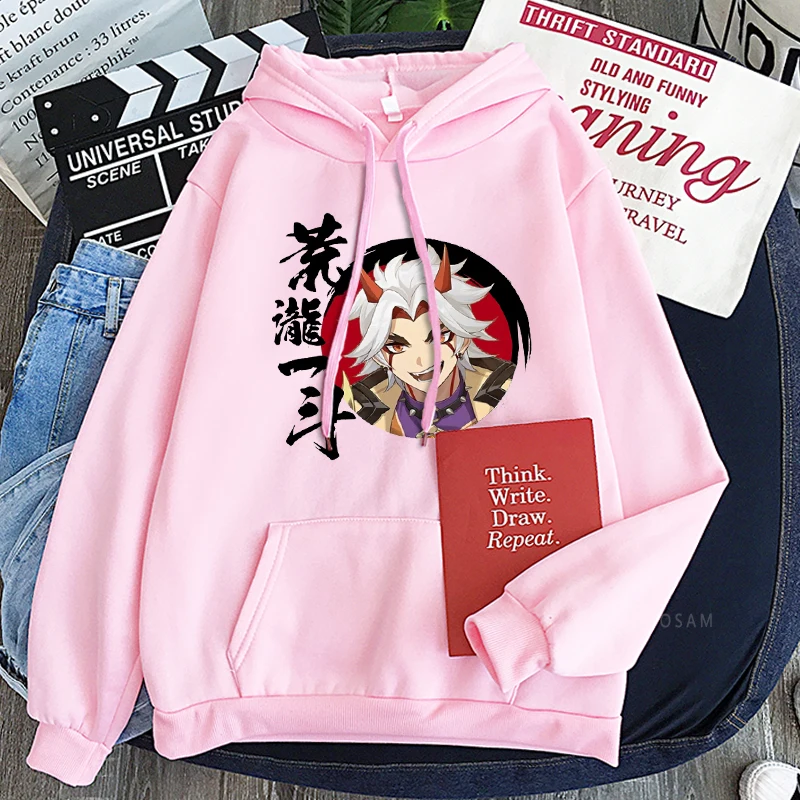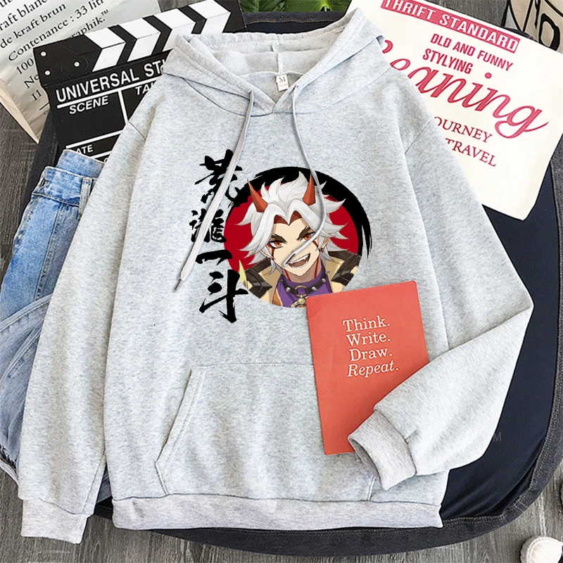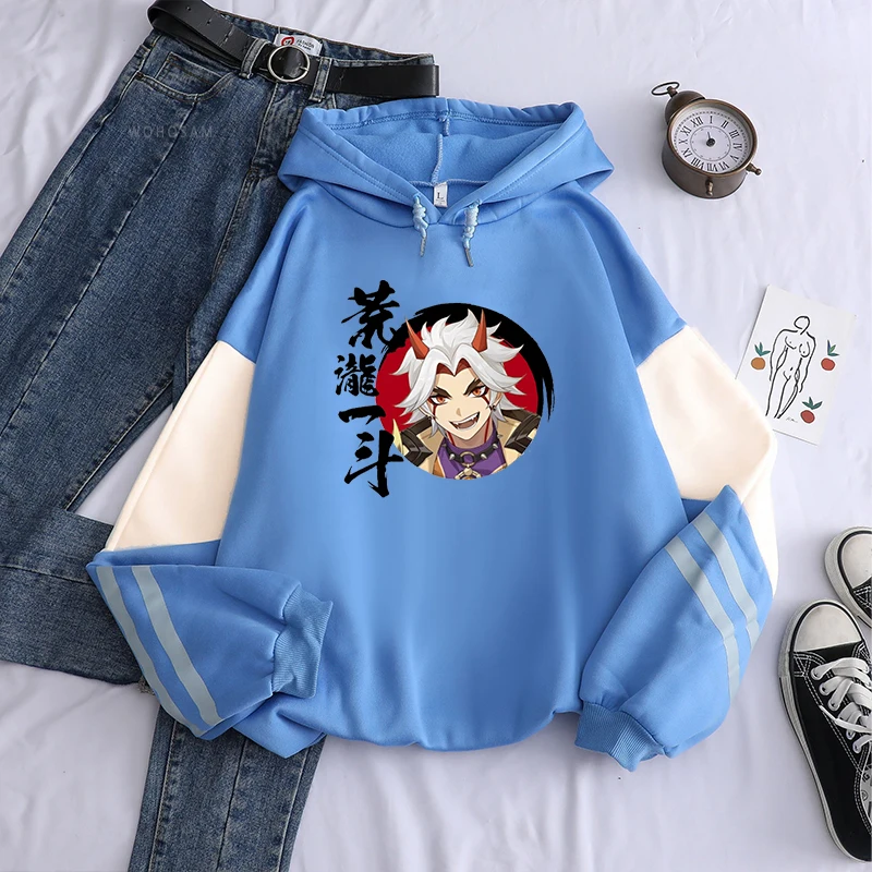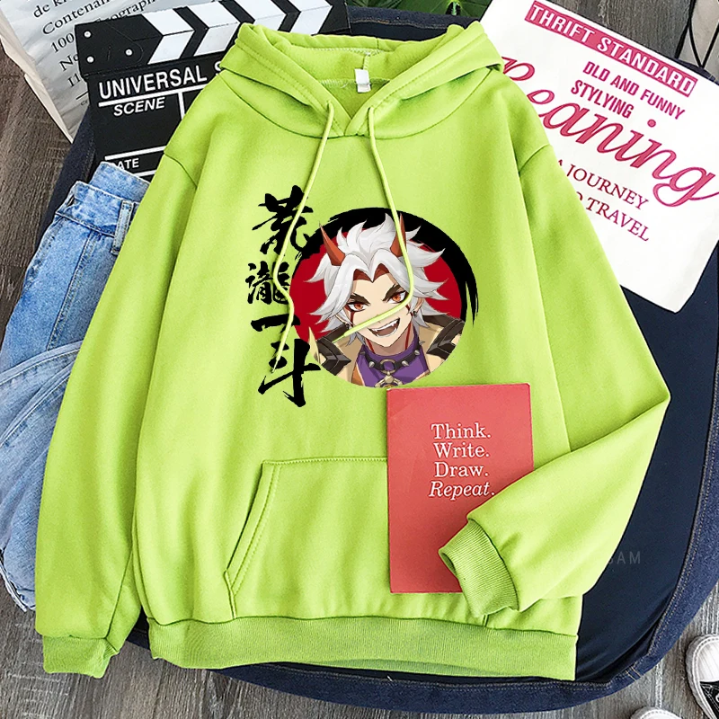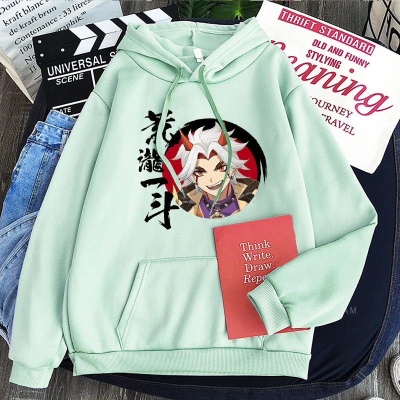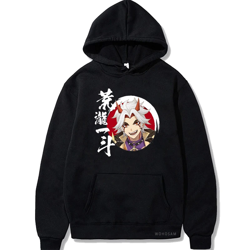 Genshin ударная игра Harajuku эстетические толстовки Готическая крутая улыбающаяся аратаки мотто мультфильм мужские зимние теплые свитшоты с длинным рукавом