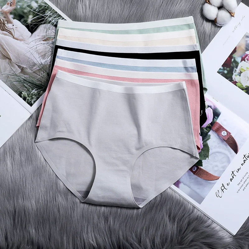 Трусы Женские однотонные, нижнее белье из хлопка, дышащие трусики с завышенной талией, тонкое нижнее белье, удобные пикантные шорты для женщин