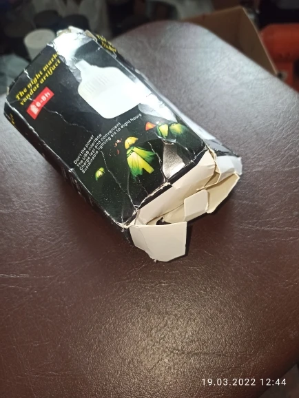 Товар сам по себе пришёл без повреждений, но внутри упаковки коробочки болтались без ограничений, упаковка не жёсткая. В итоге коробки приехали очень помятые, внутри не было слоя пузырчатой плёнки. Мне повезло, что лампы не были раздавлены.