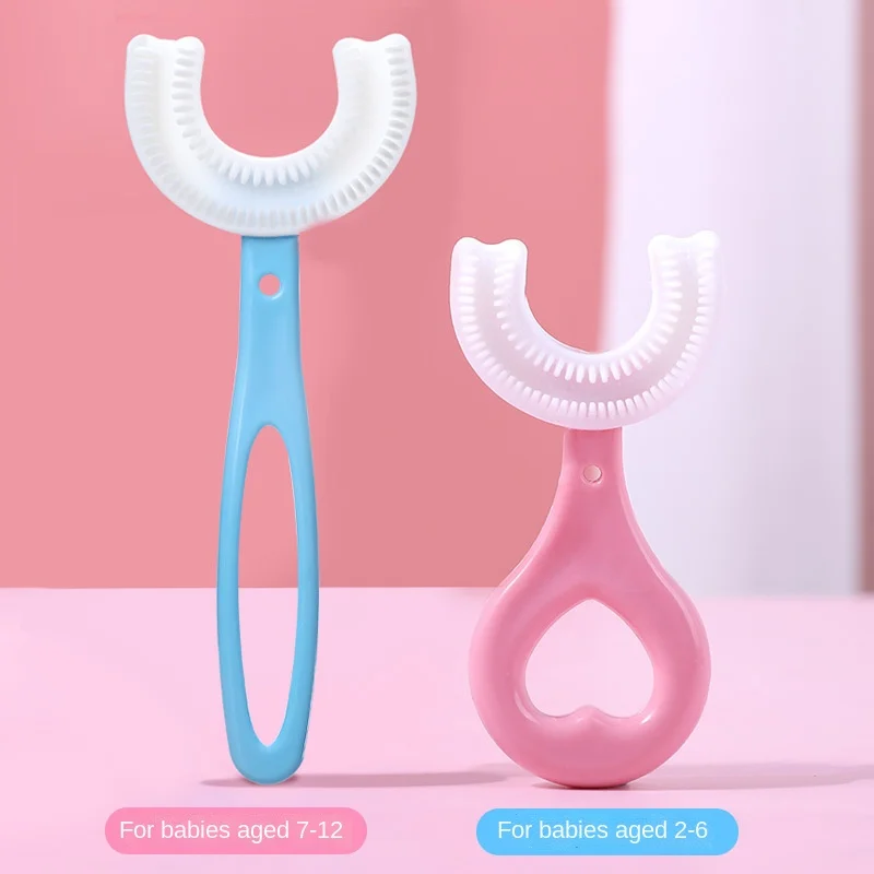 Специальная силиконовая щетка для детской зубной щетки 2-12 лет, U-образная детская зубная щетка с ручкой, силиконовая щетка для чистки полости рта
