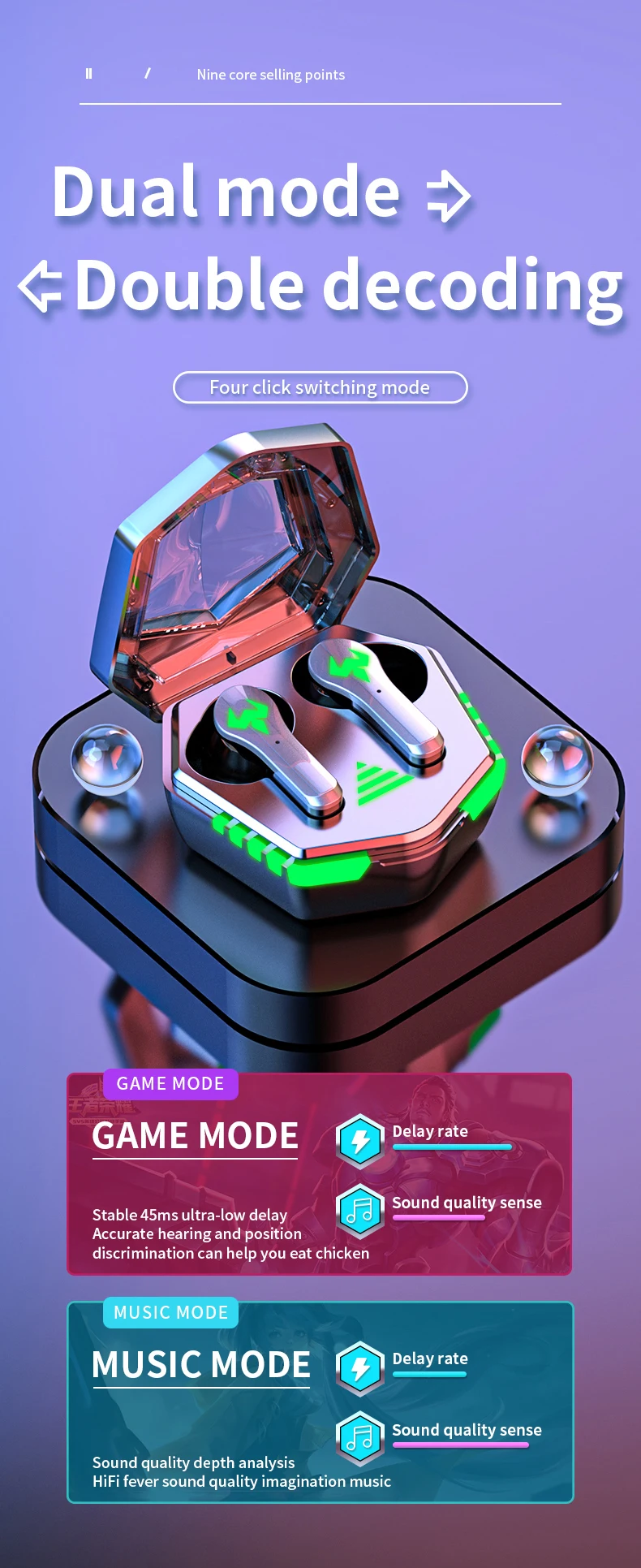 1. 9D объемный звук и двухрежимное декодирование, наушники могут принести вам удовольствие от игры и использования опыта.