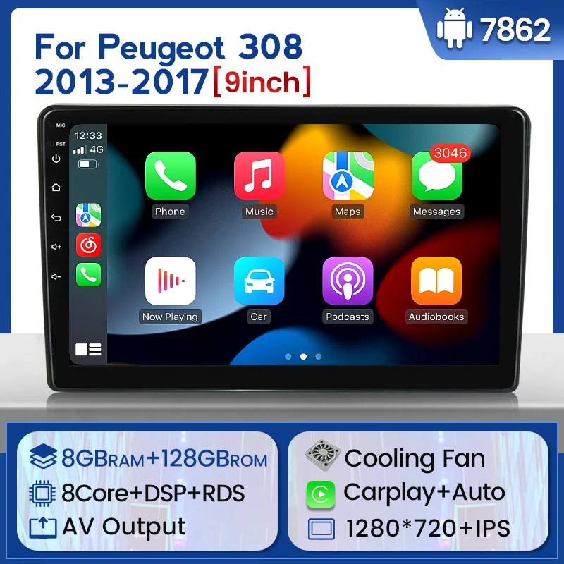 Автомагнитола MEKEDE 8 ГБ + 128 ГБ Android 11 DSP с GPS-навигацией, мультимедийный плеер для Peugeot 308 2013-2017, охлаждающий вентилятор 4G carplay