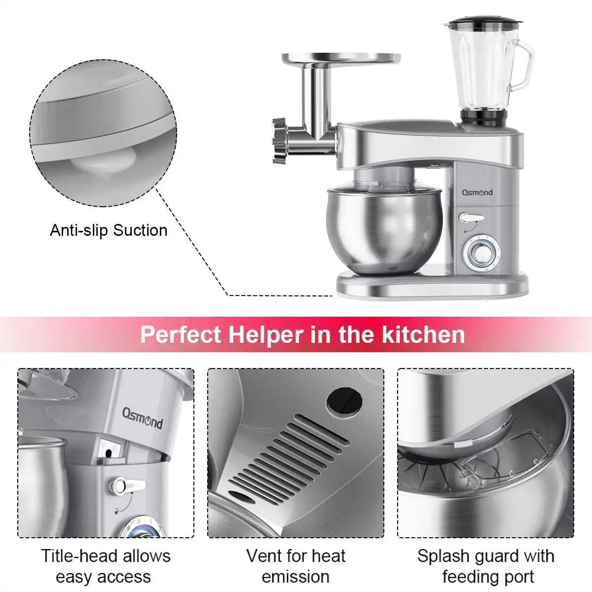 Особенности:3 в 1 многофункциональный станокВключая блендер, мясорубку и соковыжималку.Высококачественный и пищевой материал из нержавеющей стали 304Безопасный и прочный без ржавчины, который безопасен для выпечки.6. Емкость 5лЕмкость и размешать легче, легко удовлетворить ваш пищевой желудок свободно контролировать размер сервировки, не тратя ингредиенты.Мощный двигатель из чистой медиПеремешивание без давления, высокая мощность и высокая скорость, быстрое рассеивание тепла и длительный срок службы, «биение» теста не замораживает.6-Скорость Бесплатная Скорость регулированияРазличная скорость setiing удовлетворяет ваши различные потребности, и поможет вам обработать каждую еду сердцемНастройка скорости панели управления:0 ------ стопНастройка 1-6 ------ рабочая скоростьНастройка 1 ------ минимальная скорость ------ медленнаяНастройка 6 ------ Максимальная скорость ------ быстраяУстановка P ------ высокая скорость-дробленый ледВращающийся дизайн прост в использовании, легко скручивается и удобен для установки.Прозрачный чехол для брызг, пусть он защитит ингредиентыПищевой стеклянный блендер, высокая термостойкость и долговечность при использованииНизкий уровень шума и эффективное использованиеСмеситель с низким уровнем шума не делает вашу кухню особенно шумной, грязной и грязной. Его можно замесить в тесто, смешать с пирожными или использовать для получения детского питания, салатов, соков, молочных коктейлей. Обработайте масло, сахар, пирожные и пиццу быстрее, экономя время и силы.Humanized дизайн, легко добавить материалы в любое время, чтобы предотвратить материал от брызг во время перемешивания.