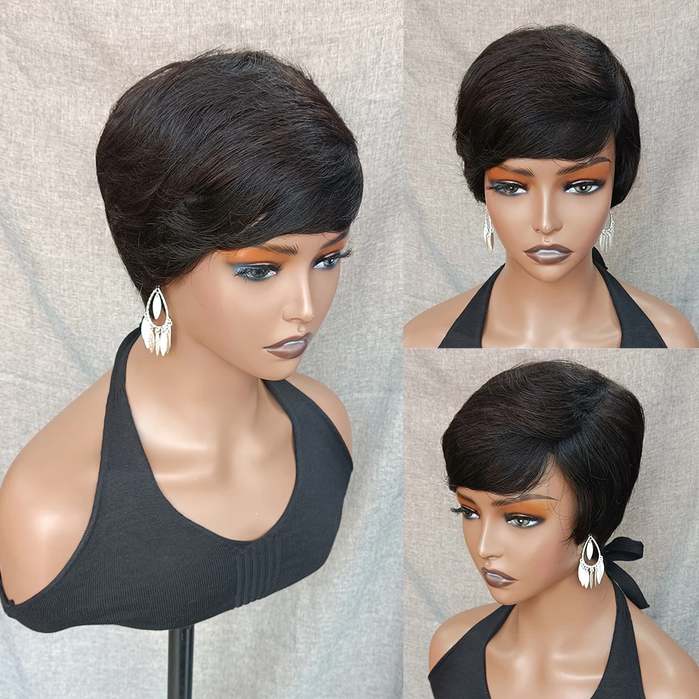 613 короткий парик Боб фальшивой, перуанские натуральные прямые человеческие волосы, парики с челкой для черных женщин, без клея, парик машинной работы
