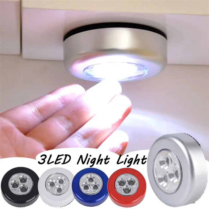 Сенсорный светильник с 3 светодиодами, лампа с нажимным краном для шкафа, кухни, спальни, гардероба, беспроводная Ночная лампа с питанием от батарейки