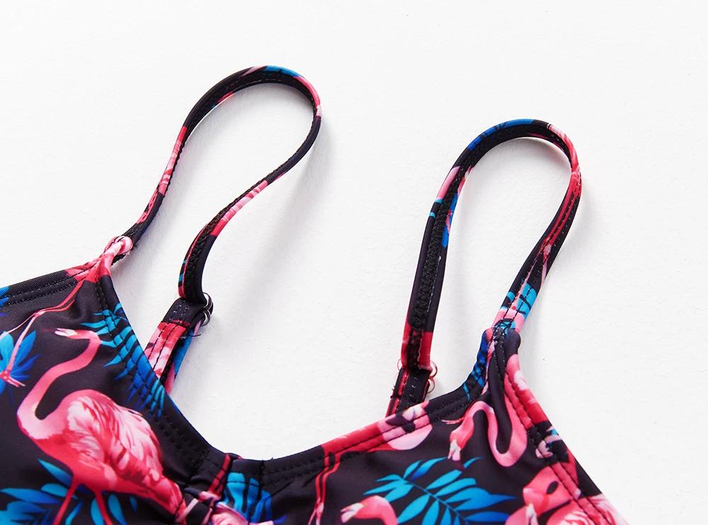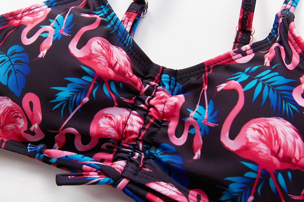 Новинка 2022, детские купальники из двух предметов, высококачественные детские купальники, купальник для девочек с принтом фламинго, От 6 до 13 лет, комплект бикини