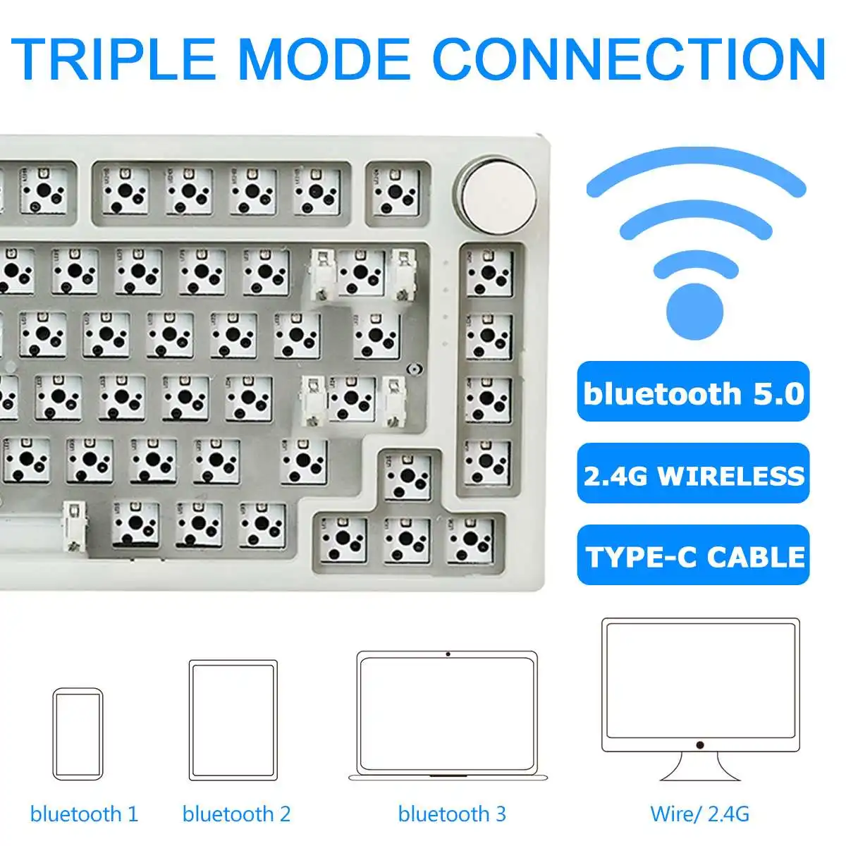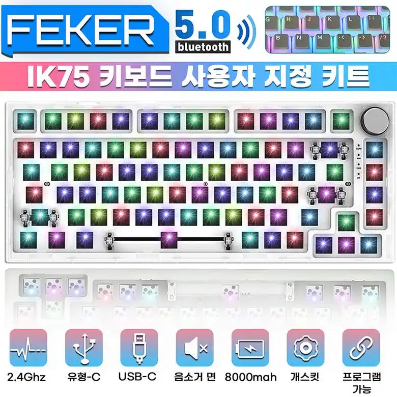 Особенности:-Hotswap клавиатура DIY Kit. Пользовательский комплект оснащен горячими заменяемыми клеммами, с помощью которых вы можете установить переключатели непосредственно без пайки. Он совместим с Cherry MX переключатели, Kailh переключатели и гэтеронских коммутаторов и других 3 pin-код или 5 pin переключатели. Вы можете легко создать свою собственную механическую клавиатуру с помощью этого набора.-Крепление прокладки. Как очень известная структура клавиатуры. Эта техника сделает клавиатуру богатой эластичностью, сделает ее лучше.-Немой хлопок. Высокая конфигурация механической клавиатуры. Устраняет звук полости/увеличивает толщину звука/уменьшает резонанс клавиатуры. Выше этого, мы подготовим 3 немой хлопок для вас, один из них-это Pcb EVA Mute cotton, который поглощает поглощение при наборе текста, а второй-EVA чехол-пена, чтобы уменьшить звук полости. Они могут дать вам лучший опыт слуха и касания.-2 позиции. IK75 обеспечит два типа позиционной платы. Один из них-это стандартная стальная позиционная плата, а другой-позиционная плата ПК, которая является лучшим партнером с креплением на прокладку.-Lubed стабилизатор. Стабилизатор lubed, когда они покидают фабрику, вам не нужно терять время на lubing стабилизатор после того, как вы получили клавиатуру.-Настройка функции ручки. Ручка может быть настроена как Кнопка громкости/кнопка воспроизведения/кнопка паузы с драйвером.-16,8 миллионов RGB подсветки. RGB является таким крутым элементом во время игры. Этот изготовленный на заказ комплект полностью знает ваши потребности и, таким образом, эта модель оснащена RGB SMD светильник. Доступно более 16,8 миллионов ламп. Также в наличии есть два виды музыкальный ритм режим, больше удовольствия в IK75.-Работа с программой драйвера для повторной сборки всех ключей и записи макросов. И драйвер можно использовать в режиме 2,4G.-Тройное подключение. bluetooth 5,0, Тип-C USB-C, 2,4 ГГц тройной режим соединения, дает возможность при использовании клавиатуры для настольного компьютера в беспроводной. Совместимость с windows 2000 и выше и MAC , BLE поддерживает WIN8 или выше систему