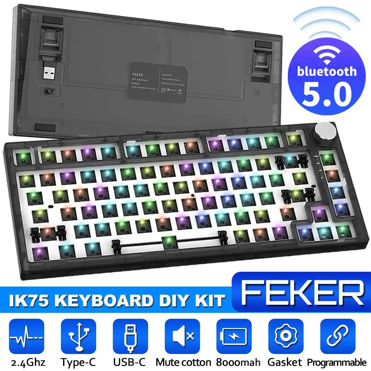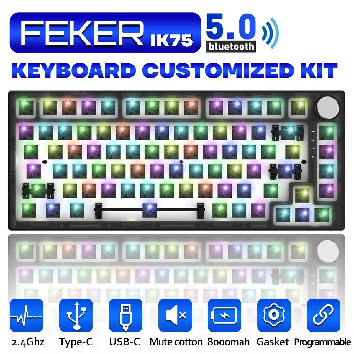 Комплект клавиатуры FEKER IK75 RGB, клавиатура с поддержкой Bluetooth 5,0, Двухрежимная, монтажная пластина, чехол, механическая клавиатура, индивидуальный комплект