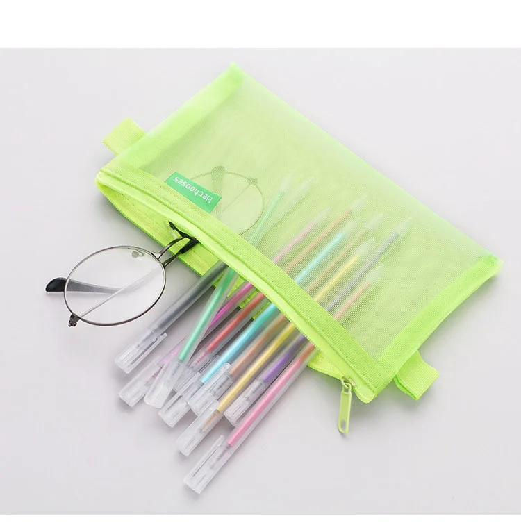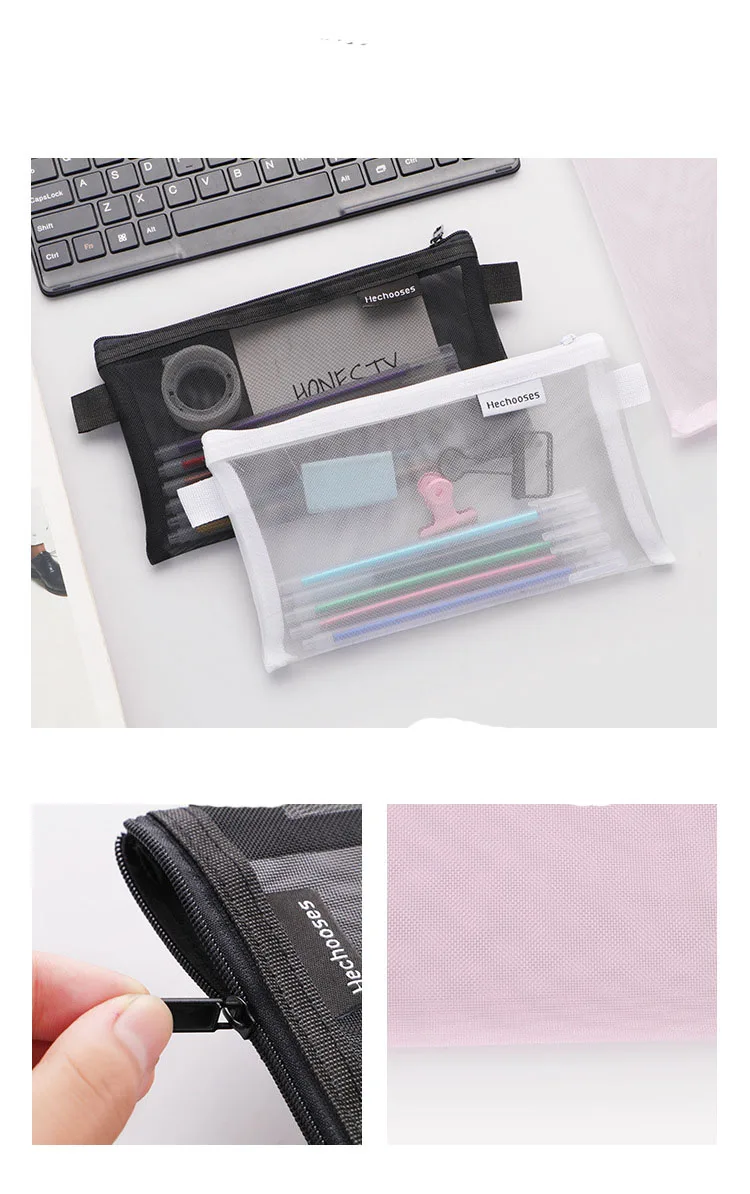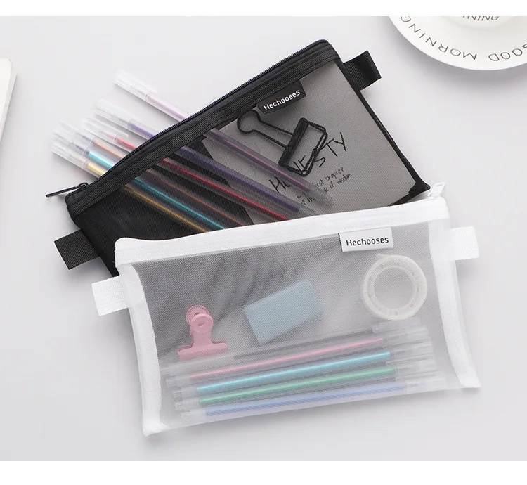 Сетчатый Прозрачный чехол для карандаша, большой Органайзер, простые сумки для девочек, товары для школы, канцелярские принадлежности