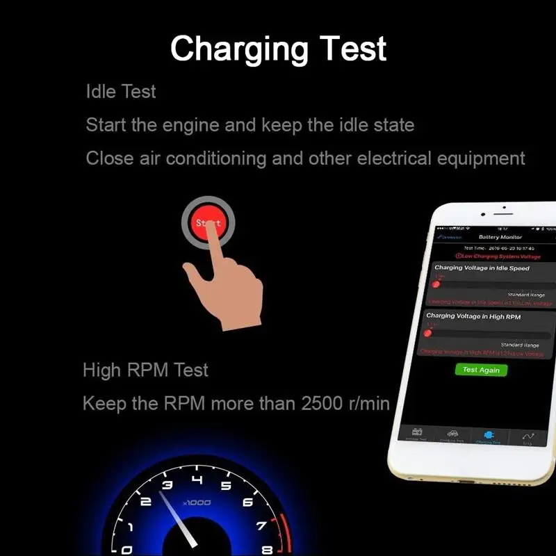 Feature 8car battery tester