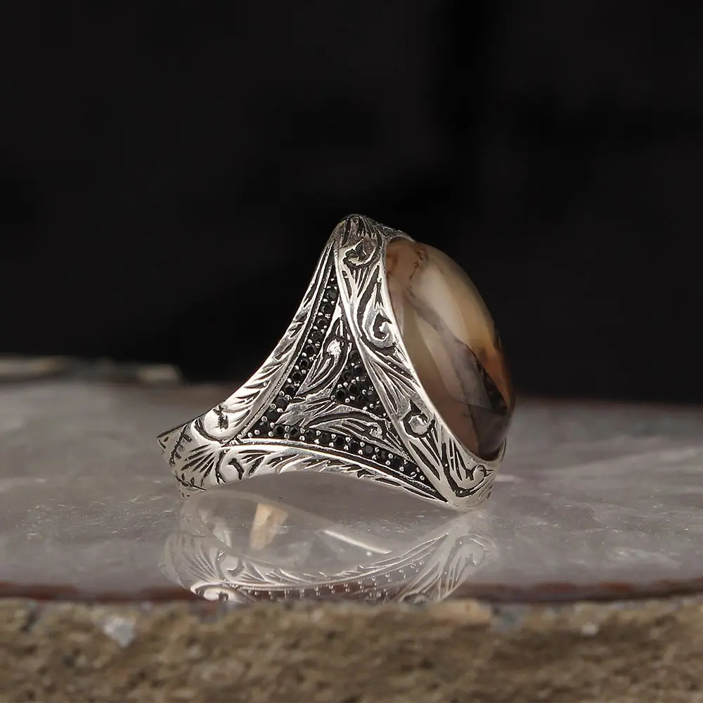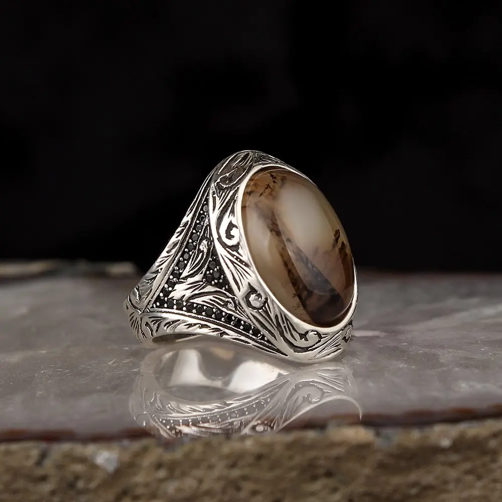 Мужское кольцо из серебра 925 пробы, из Йемена, с агатом, мужские подарочные аксессуары, ювелирные изделия, настоящий натуральный камень, Сделано в Турции, Сделано в Турции