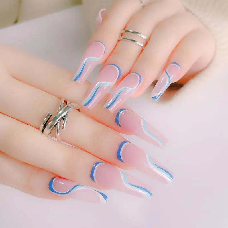 Накладные ногти ELECOOL 24 шт.коркор. длинные многоразовые с искусственными французскими искусственными розовыми искусственными ногтями стикер для ногтей накладные ногти