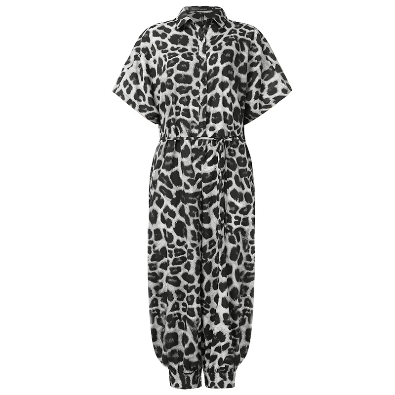 Женские комбинезоны-карго Celmia с леопардовым принтом, летние модные комбинезоны с коротким рукавом, повседневные свободные уличные Комбинезоны на пуговицах, 2022