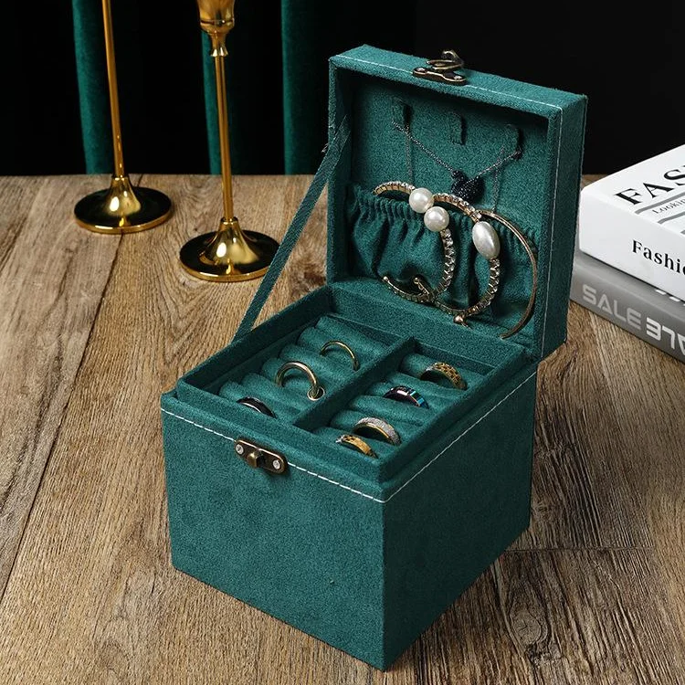 Шкатулка для ювелирных изделий в стиле ретро, зеленая трехслойная Женская шкатулка для хранения кольцо, ожерелье, серьги-держатель, чехол, органайзер для ювелирных изделий, упаковочная коробка