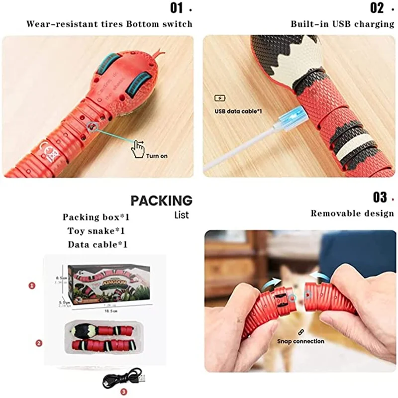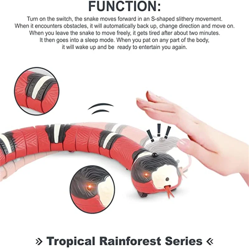 【Реалистичный и более Забавный: с 3d-текстурой и яркими цветами, сегментированный корпус обеспечивает превосходное скользящее действие. Когда умная змея ускользнет, глаза излучают красные светодиодные фонари, и язык начнет глотать, особенно ночью, веселье увеличивается, И он приносит различный игровой опыт детям и домашним животным. 【Высокое Качество 】: домашняя игрушка для кошек изготовлена из самого прочного высококачественного АБС-материала, поверхность корпуса змеи очень имитация, гладкая и без заусенцев, не нужно беспокоиться о вреде для младенцев и домашних животных. [Перезаряжаемый корпус]: Игрушечная змея использует usb-зарядку, встроенный литиевый аккумулятор, Время полной зарядки составляет около 40 минут, не нужно беспокоиться о заказе аккумулятора. Нажмите на голову игрушки змеи, чтобы активировать его и сделать его двигаться 【Индукция змеи escape】эта Индуктивная игрушка змеи имеет встроенный инфракрасный датчик, который может автоматически воспринимать препятствия и ускользнуть. Гибкие движения очень веселые, мы уверены, что вашим детям и домашним животным понравится эта милая интерактивная игрушка [Идеальный подарок]: Забавные игрушки-розыгрыши идеально подходят для детского дня рождения, Хэллоуина и рождественских подарков, практичные игрушки-розыгрыши приносят много сюрпризов и веселья детям, даже кричат