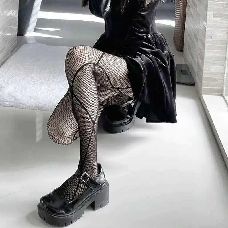 Пикантные колготки Ins темная серия Полые сетчатые чулки большой пе...
