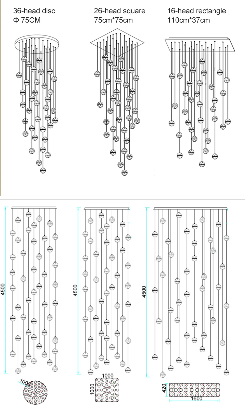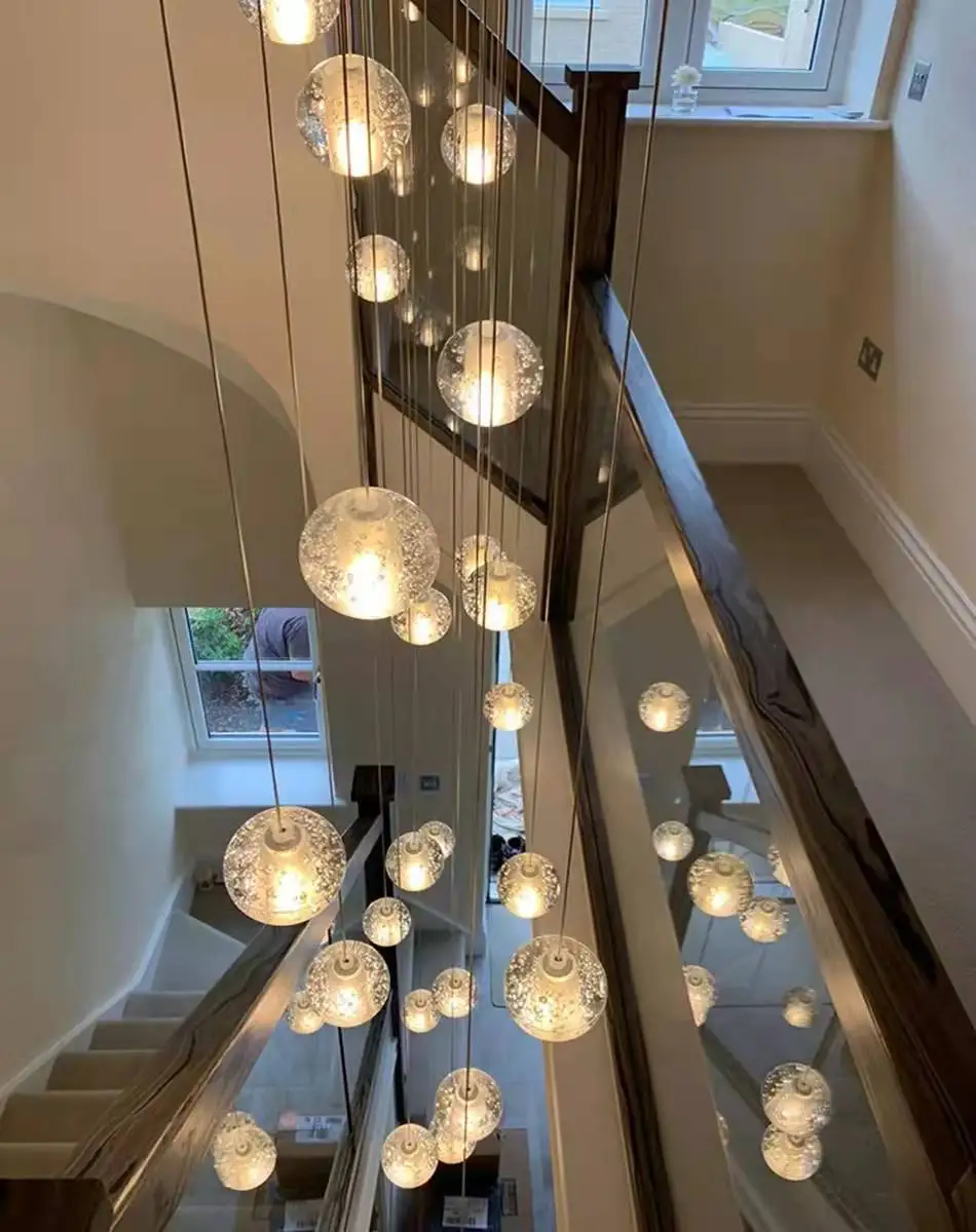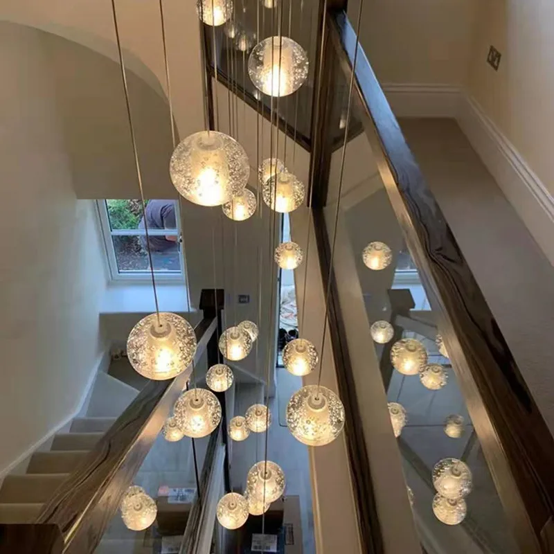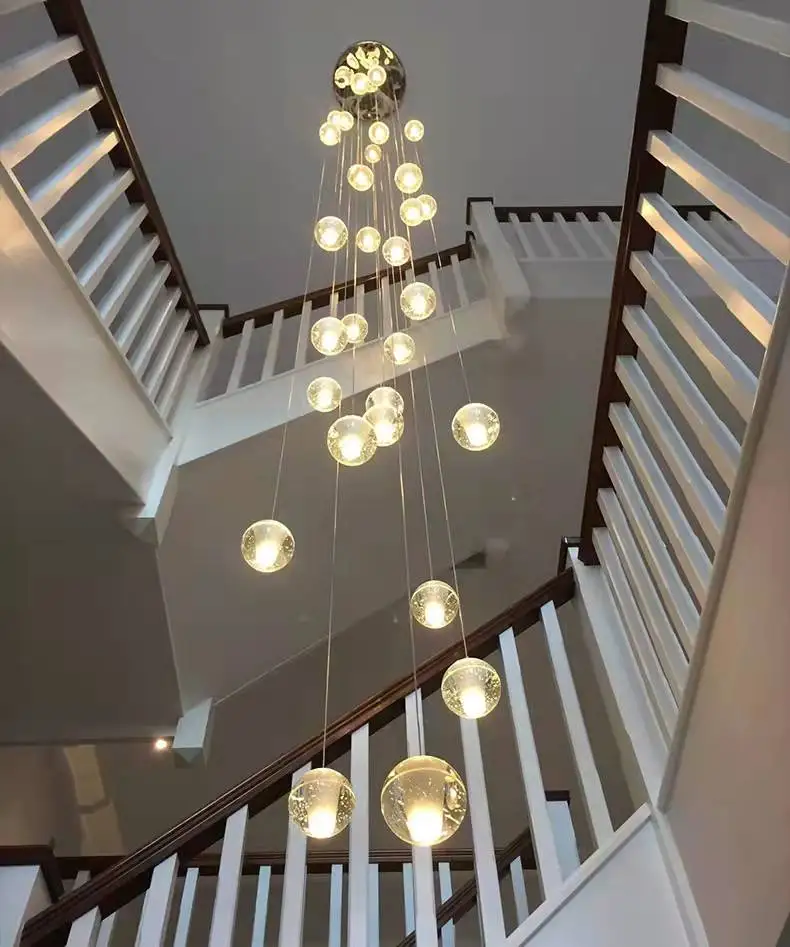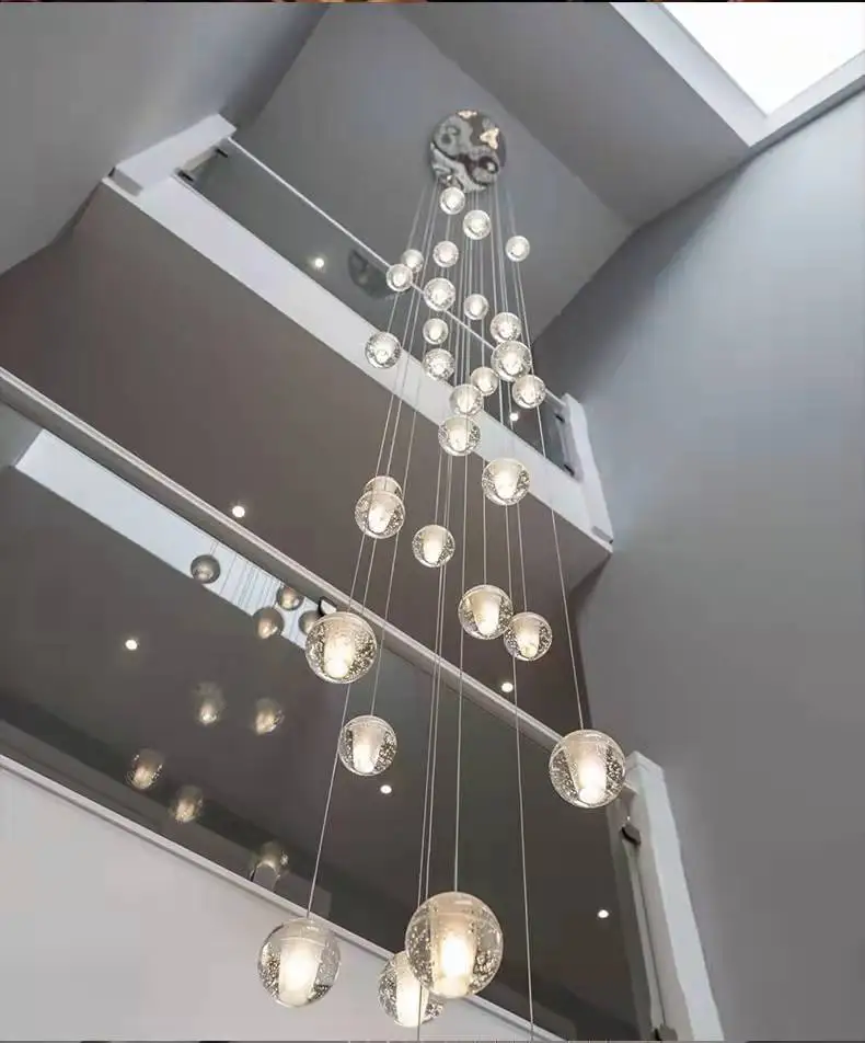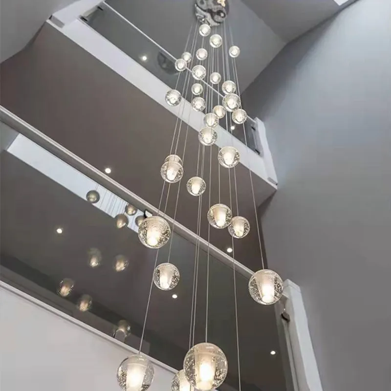 Подвесная хрустальная люстра для лестницы, длинная веревка с шариками, креативное украшение для салона ресторана, бара