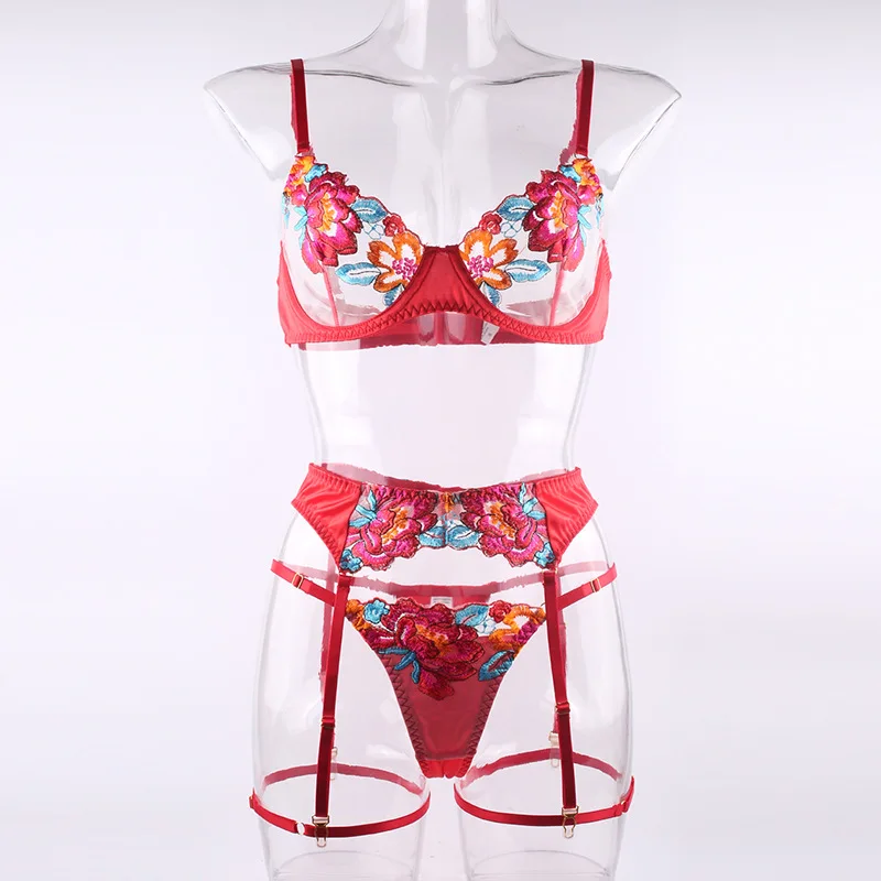 Сексуальный женский комплект нижнего белья с цветочной вышивкой, го...