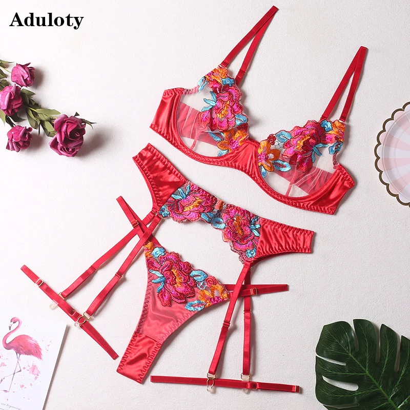 Женское сексуальное нижнее белье, нижнее белье с цветочной вышивкой...