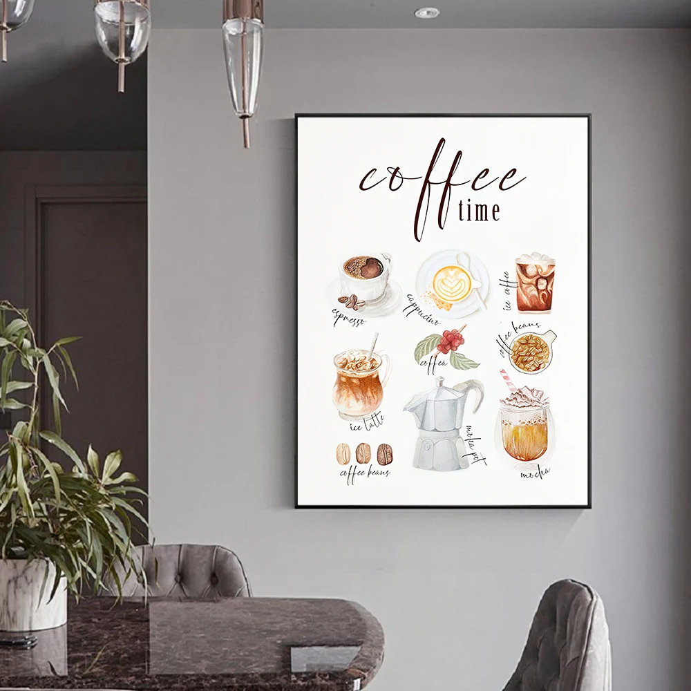 Кофейный плакат, принты, Минималистичная какао-чашка с кофеином, Картина на холсте, скандинавский рисунок Wal Art, картины для кухни, гостиной, домашний декор