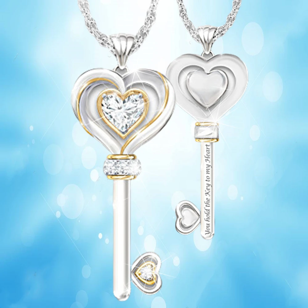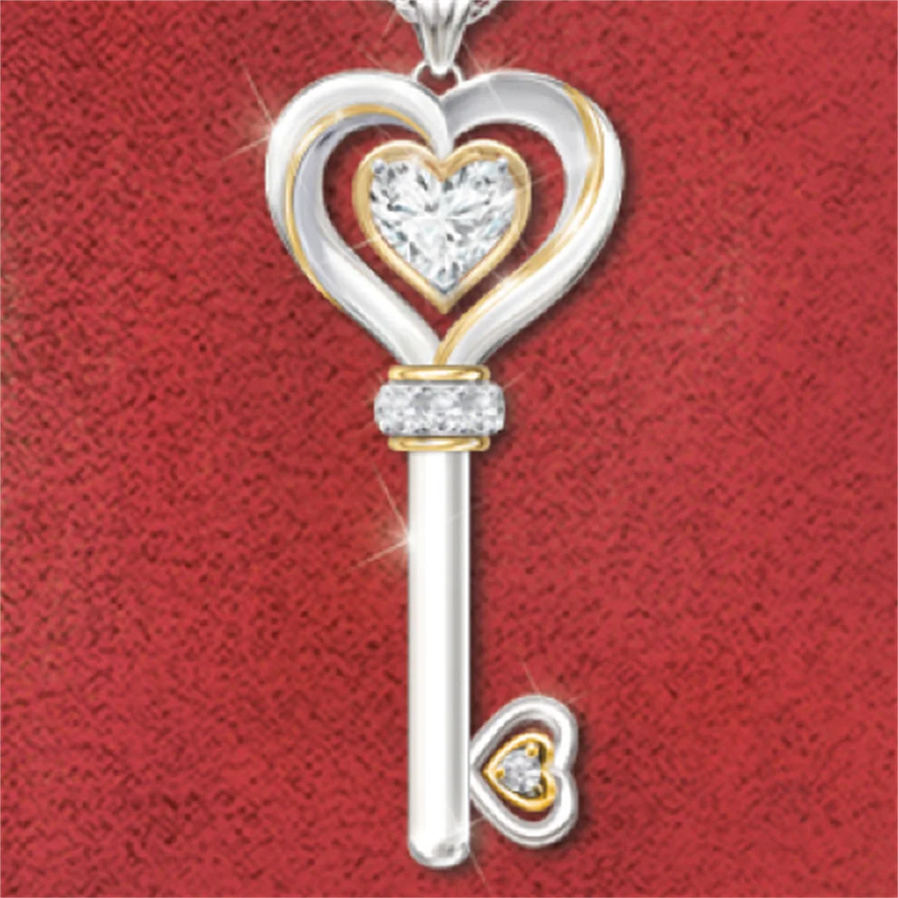 Креативное модное ожерелье с подвеской в форме сердца и стразами, изысканное женское ожерелье с ключом, ожерелье принцессы, романтический подарок на день святого валентина