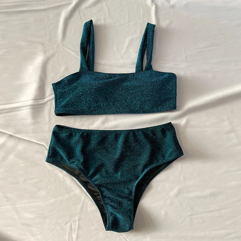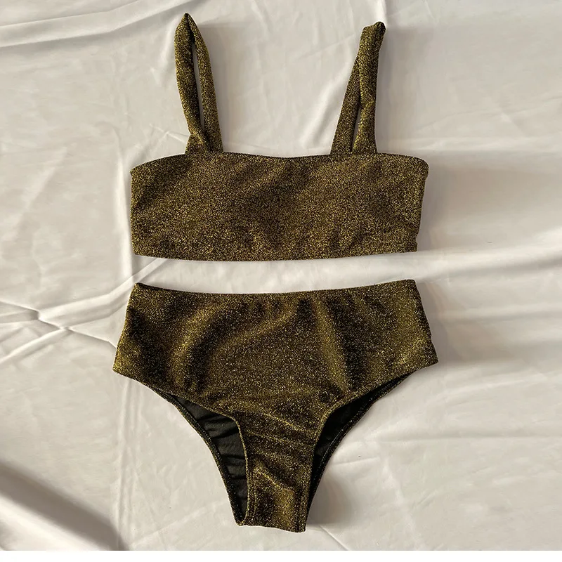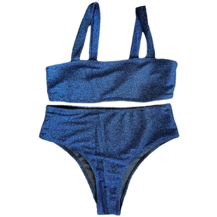 Новинка, сексуальное блестящее бикини-бандо с блестками, 2022, женский купальник, женский купальник из двух предметов, комплект бикини с высокой талией, купальный костюм