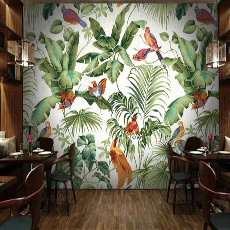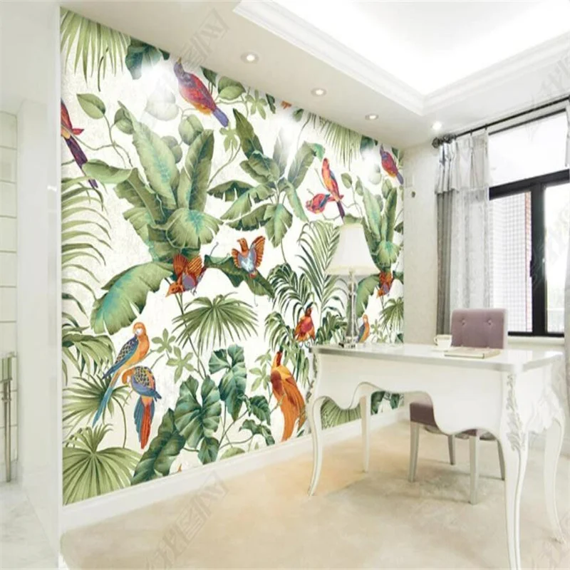 Тропические растения, цветы, птицы, попугаи, фрески на заказ, домашний декор, настенная бумага, декор для спальни, 3d настенная бумага, самоклеящаяся настенная бумага